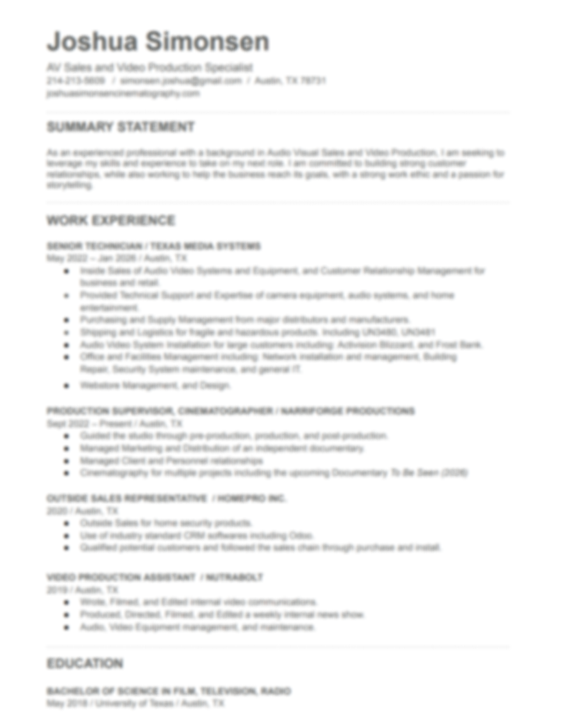 My expertise spans across diverse projects including commercials, web content, corporate materials, television shows, live performances, and feature films. Additionally, I possess a strong background as an Audiovisual equipment technician. I like to keep a close eye on industry innovations.